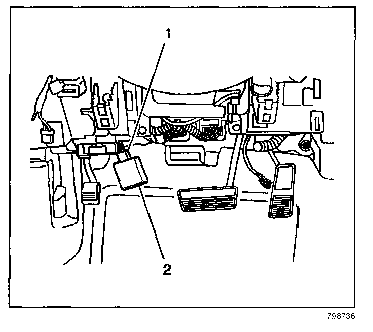 3. Disconnect the electrical connector (1) from the turn signal/hazard warning flasher (2).