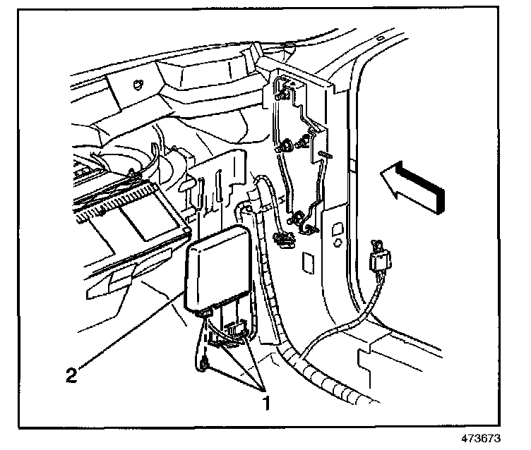 4. Disconnect the electrical connectors (1) from the DIM (2).