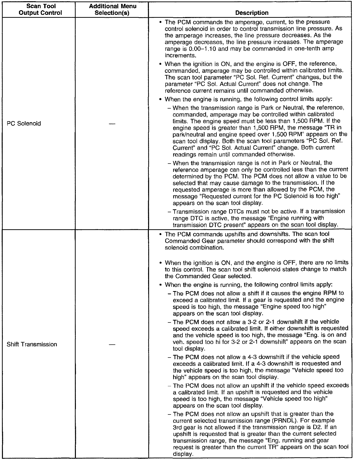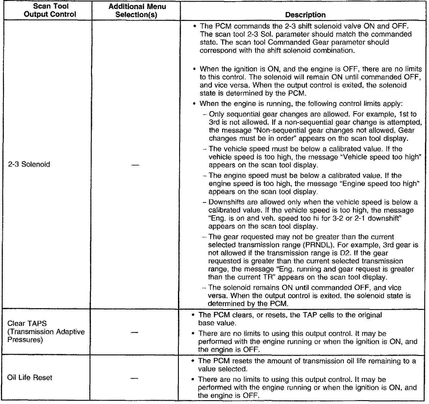 Scan Tool Output Controls