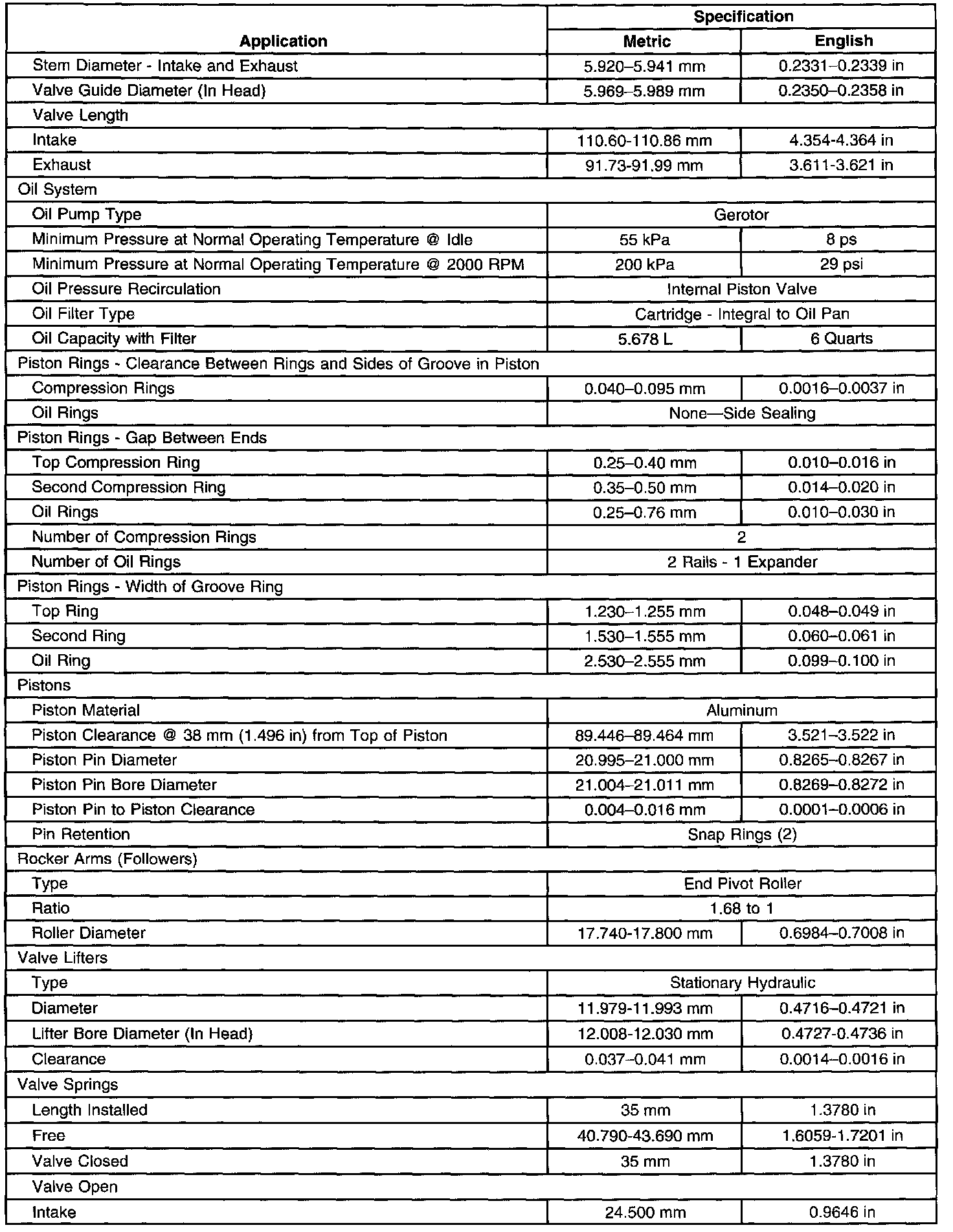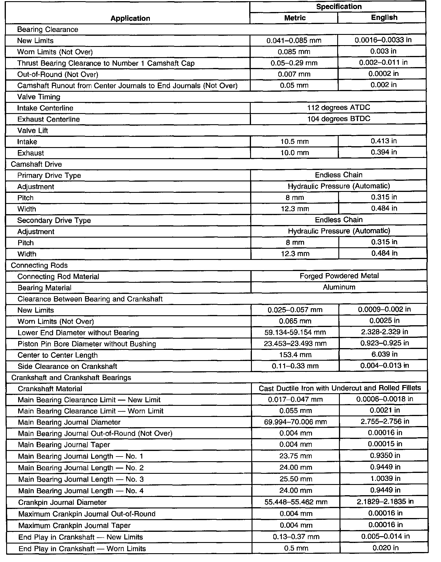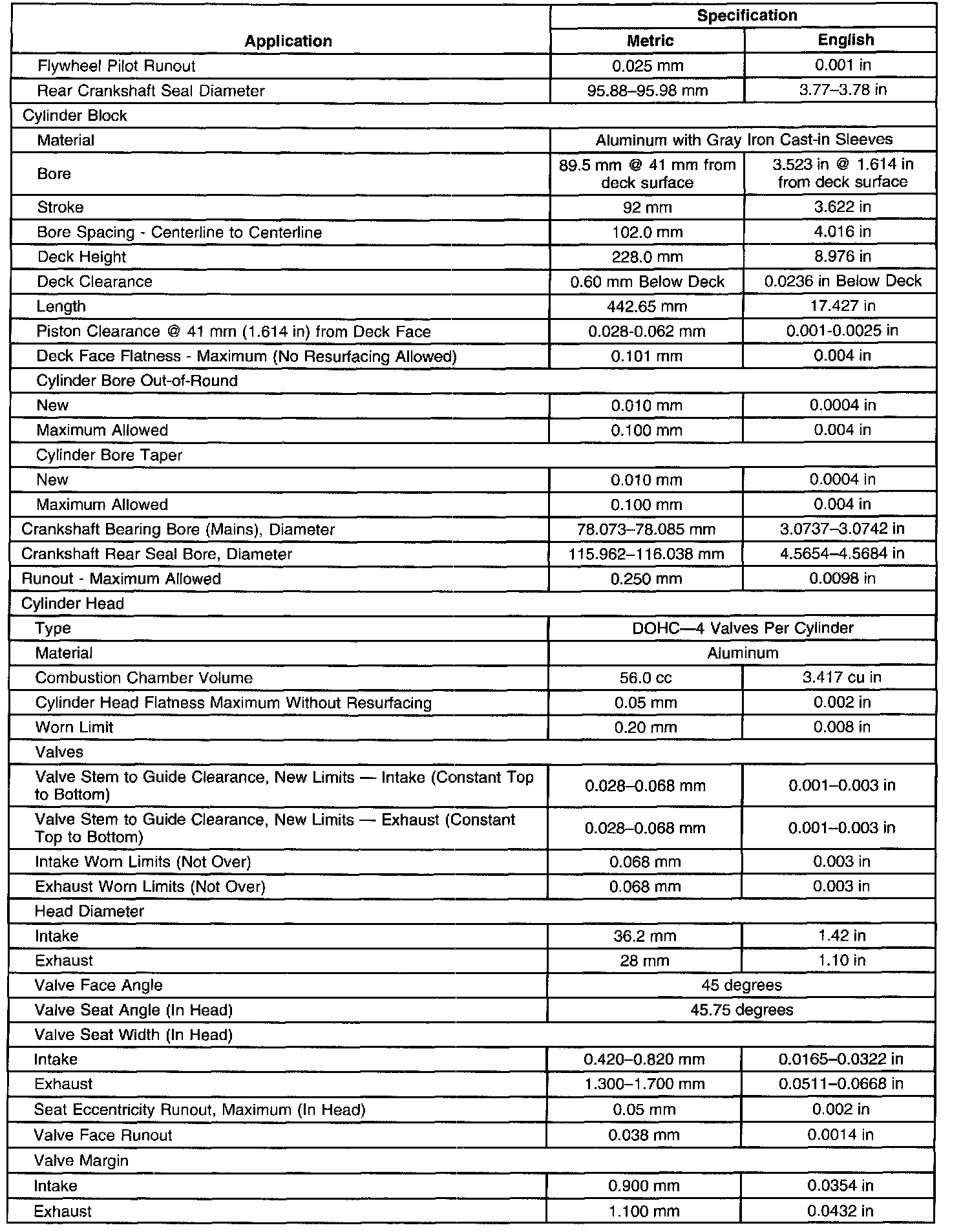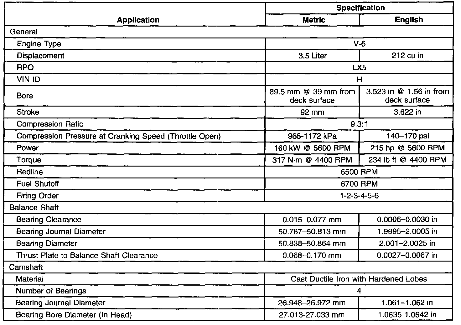 Overhaul Specifications