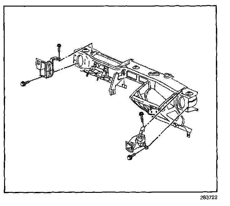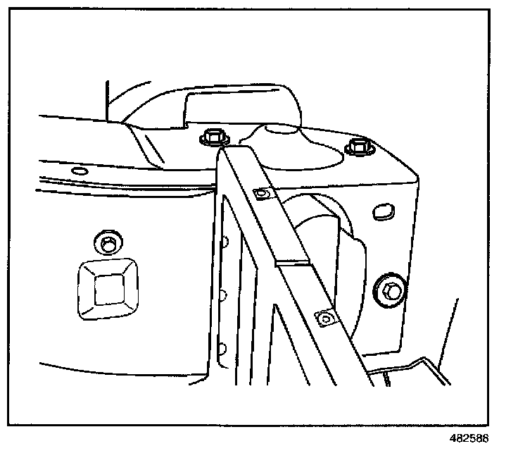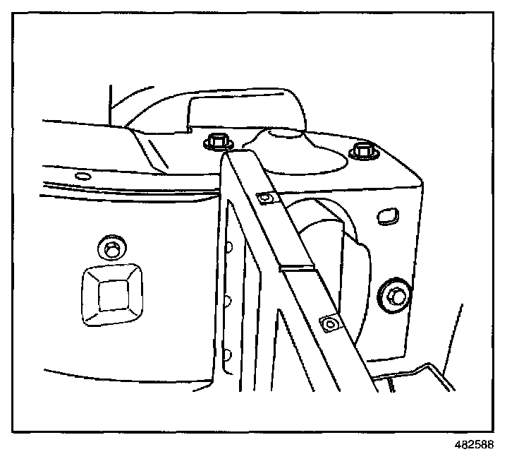 10. Tighten the bolts retaining the cross vehicle beam to both the left and the right hinge pillars.