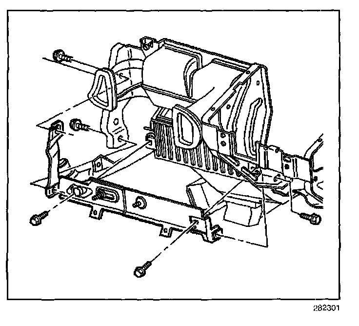 18. Remove the bolts which secure the center support bracket of the HVAC module.