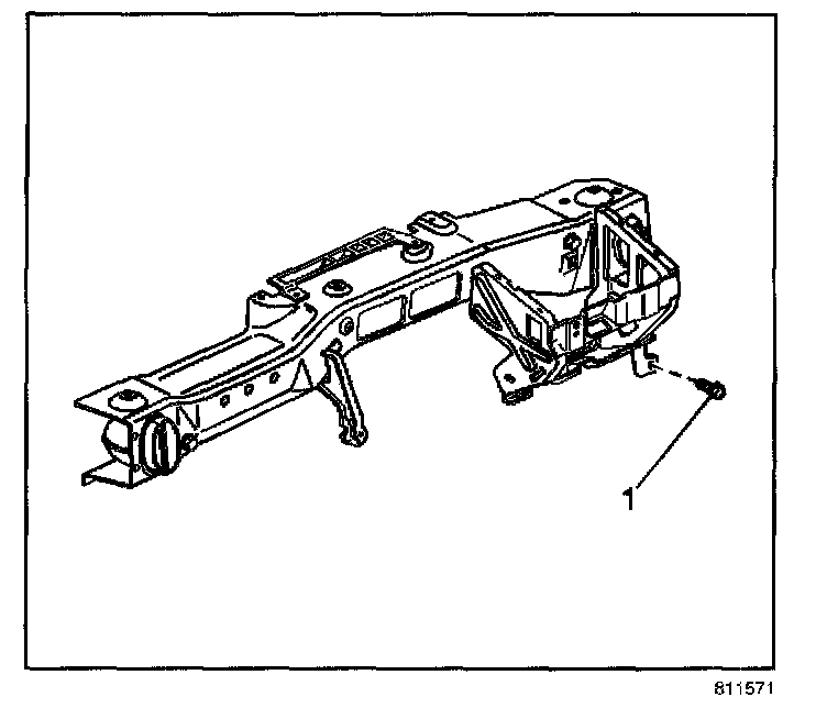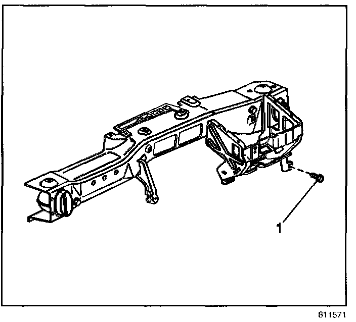 25. Remove the bolt (1) from the cross vehicle beam.