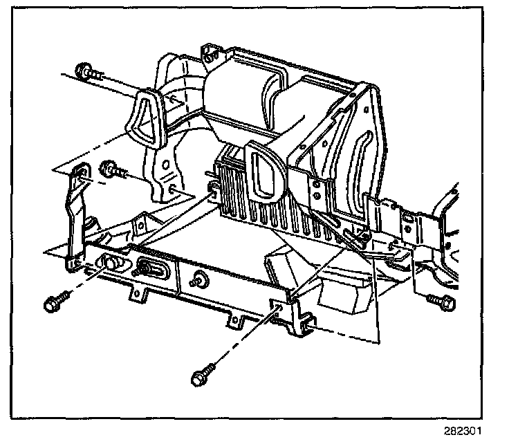 22. Remove the bolts which retain the HVAC module to the cross vehicle beam.