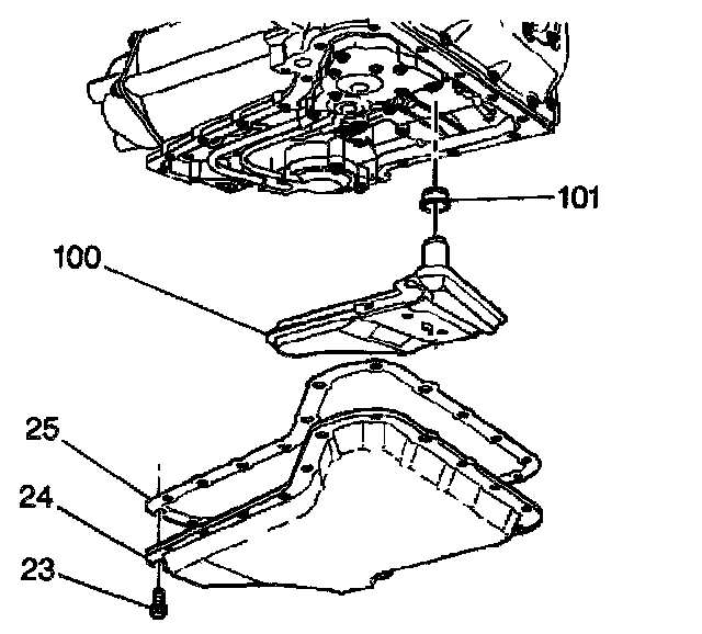 3. Install the gasket (25) and the oil pan (24).