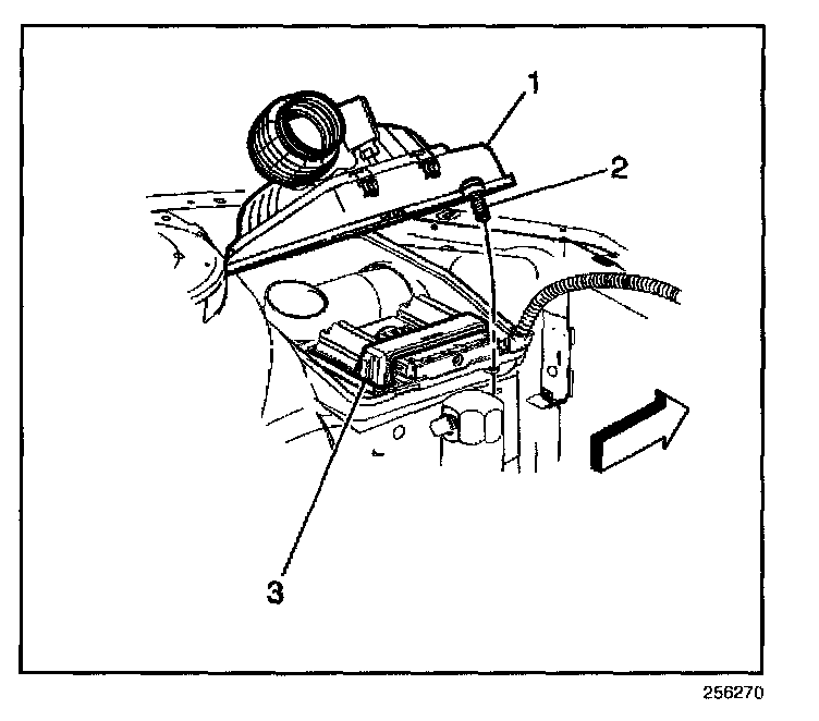 2. Install the PCM (3) into the lower air cleaner housing.