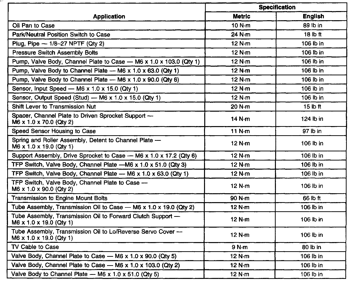 Fastener Tightening Specifications - Unit Repair