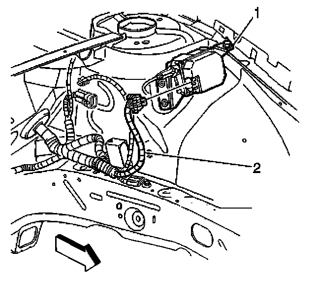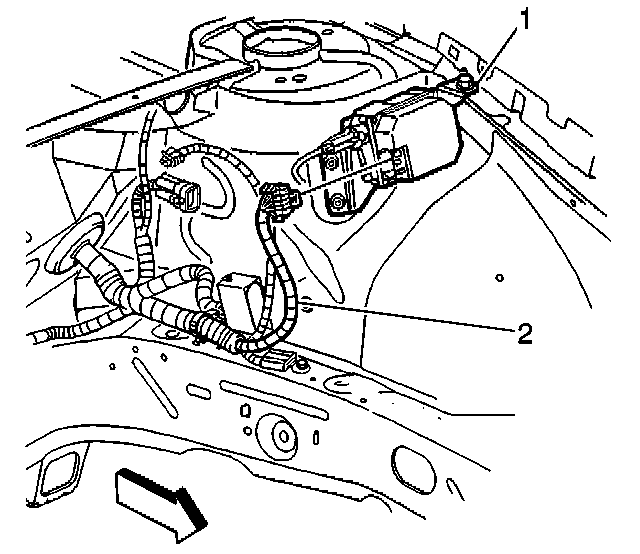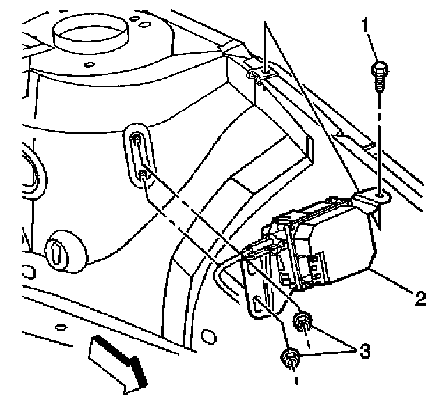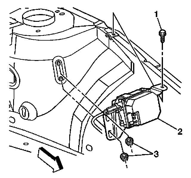 4. Remove the cruise control module and bracket assembly (2) from vehicle.