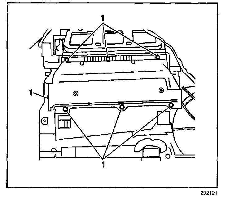 3. Ensuring the seals at the front of dash are in the proper positions, install the heater core cover screws.
