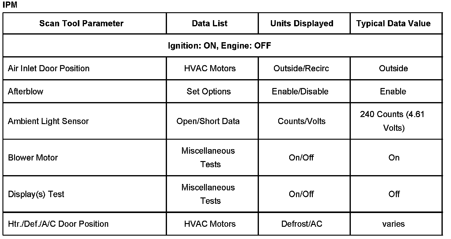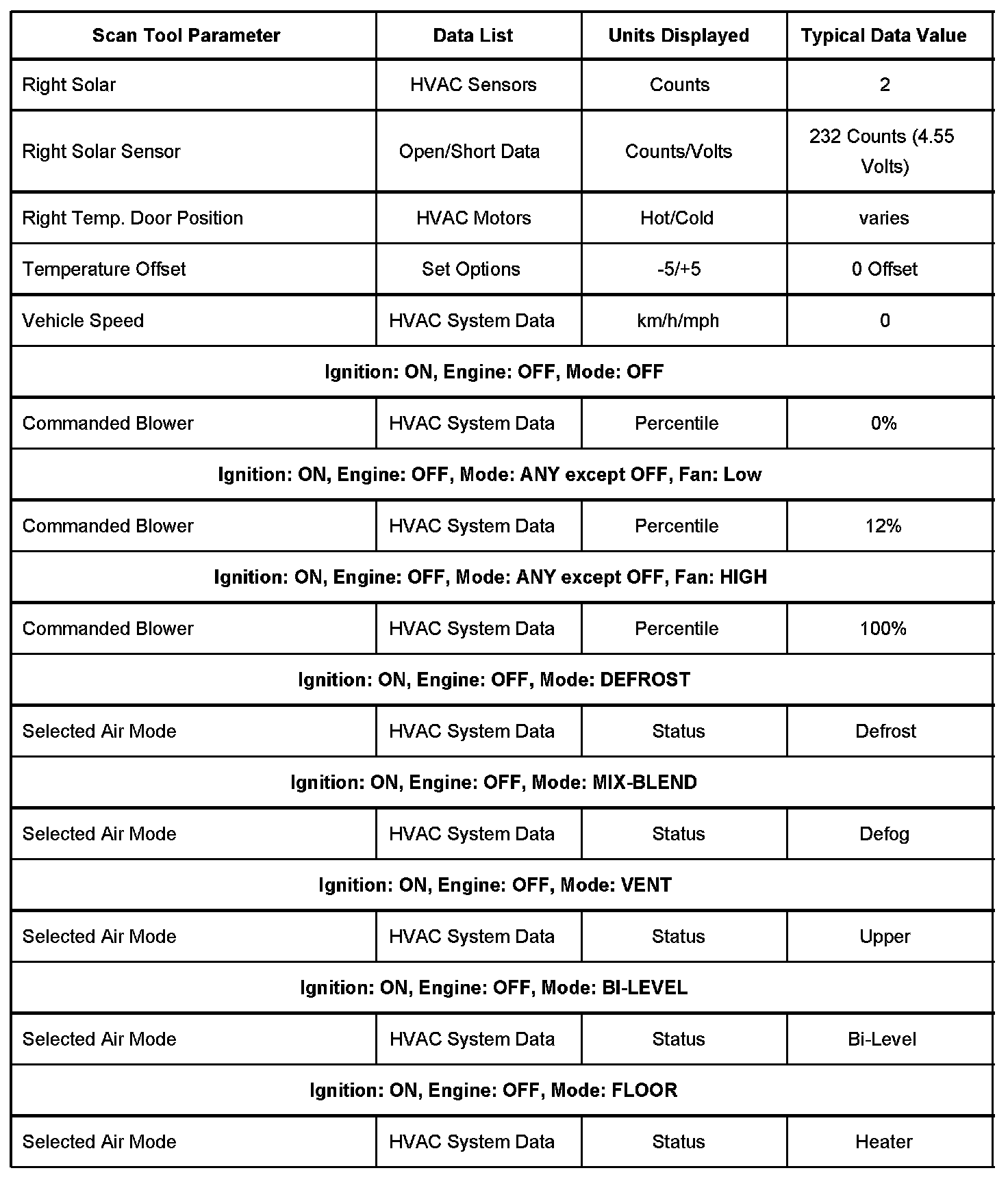 Scan Tool Normal Data Values