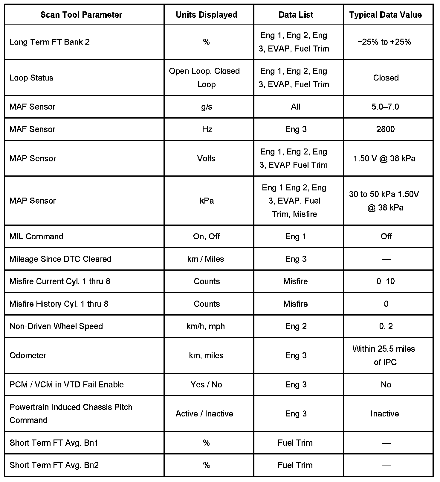 Scan Tool Data List - Powertrain System