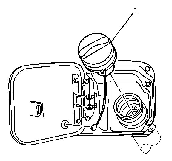 2. Remove the fuel tank filler pipe cap (1).