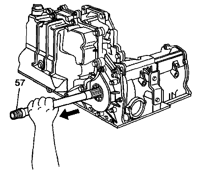 6. Remove the output shaft (57) through the opposite end of the case.