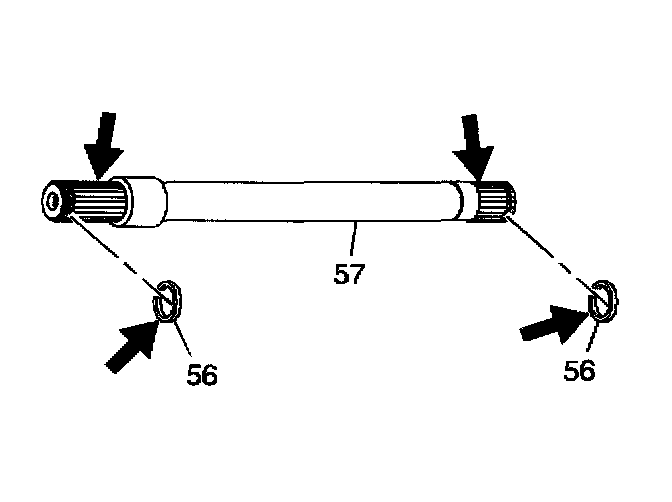 1. Inspect the output shaft (57) splines for burrs or damage. Inspect the snap rings (56) for overexpansion.