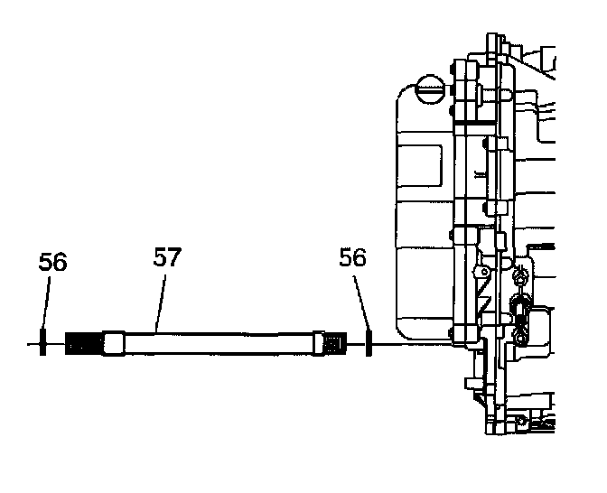 2. Install the snap rings (56) onto the output shaft and install the output shaft (57) from the channel plate side of the transmission.