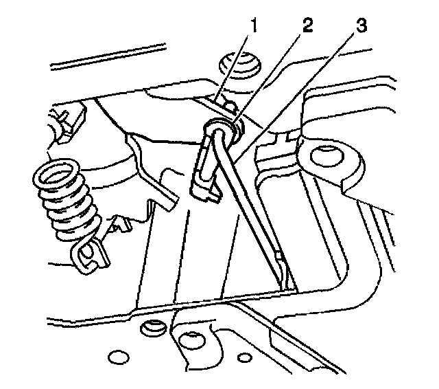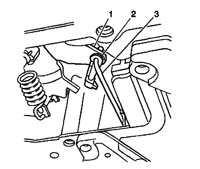 5. Use a small screwdriver in order to disconnect the manual valve link retainer (2) from the manual valve link (3).