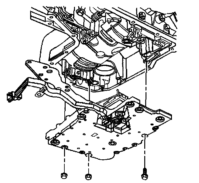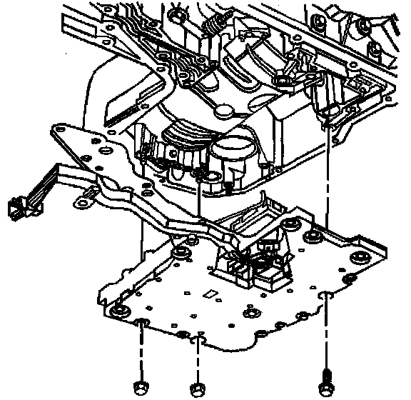 8. Remove the lower valve assembly (consisting of the channel plate, control valve body, accumulator assembly, and wire harness extension) from the transaxle case as a single unit.