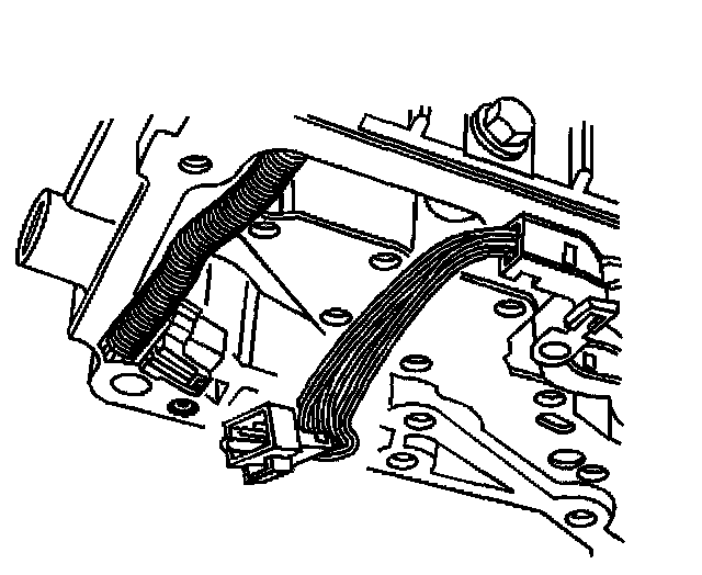 2. Remove the bolts from the oil transfer plate and the wire harness extension retaining clip.