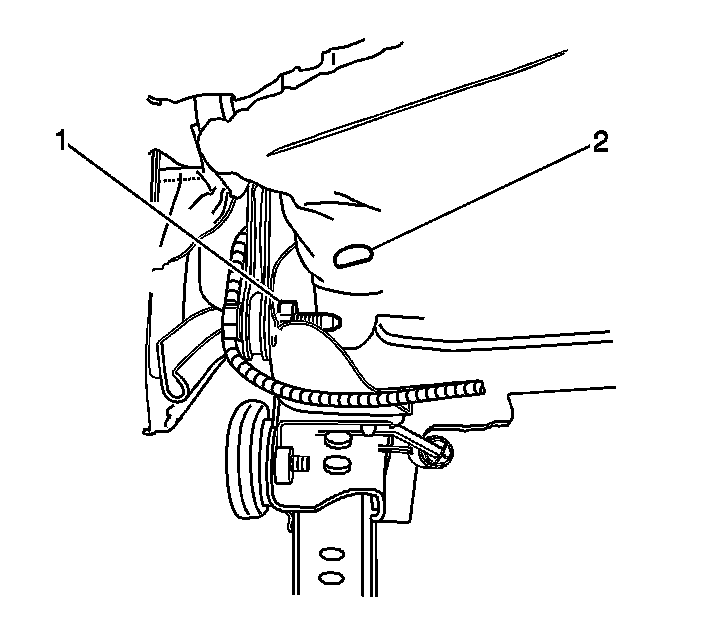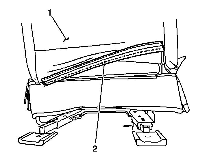 6. Install the loop tab (2) to the seat back recliner bolt (1).
