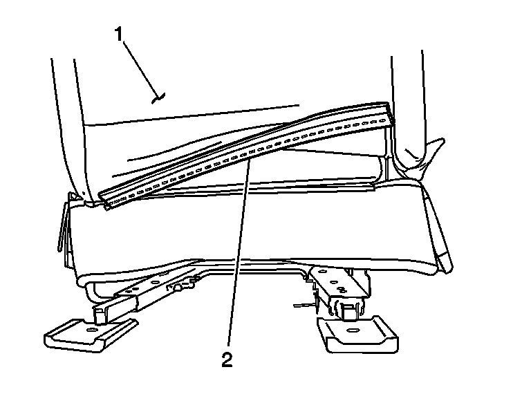 4. Pull back the rear of the seat cushion cover in order to access the loop tab (2) on the cover.