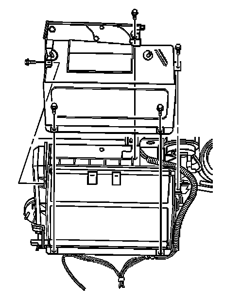 5. Remove the screw for the heater /defroster door case cover retainer.
