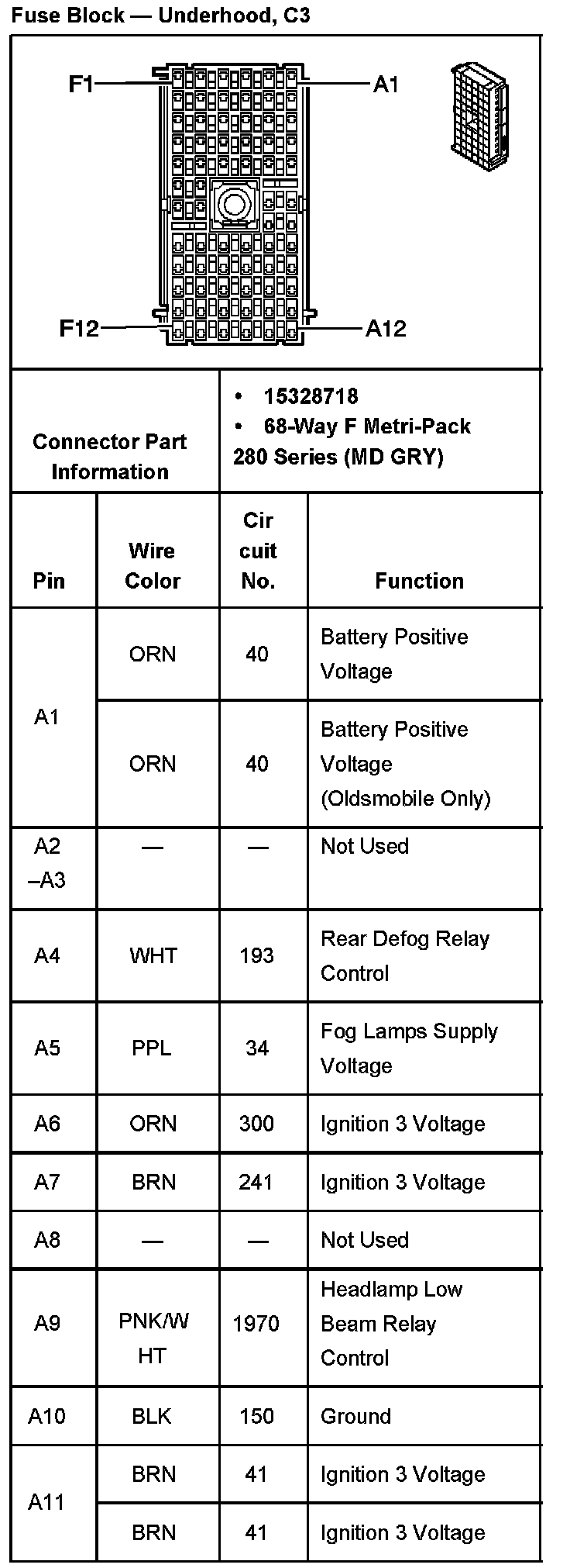 Fuse Block - Underhood, C3 Part 2: