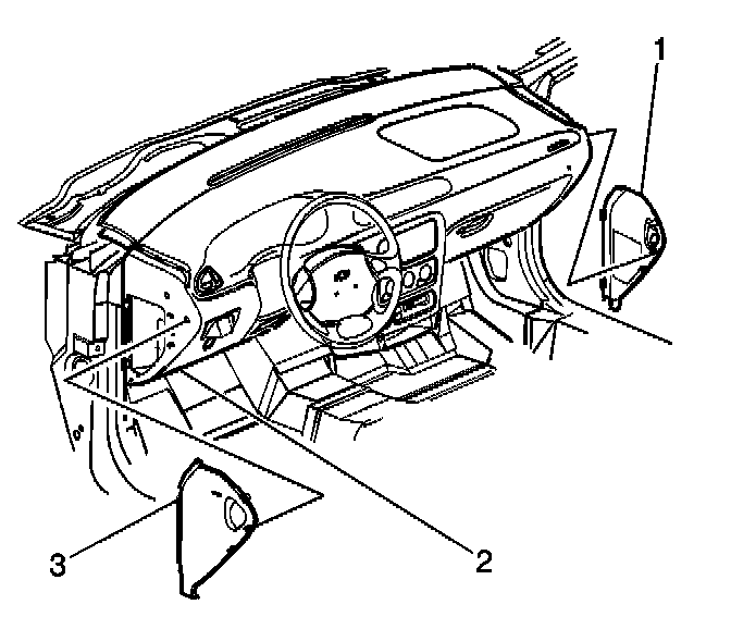 2. Remove the instrument panel (I/P) outer trim covers (1,3).