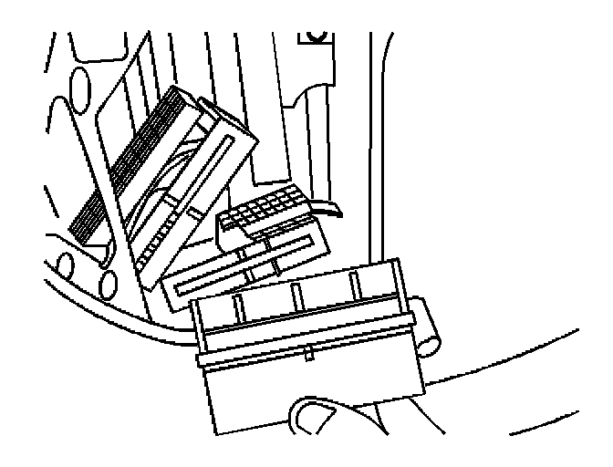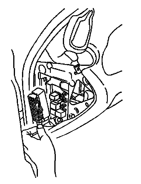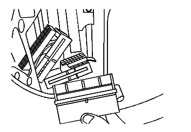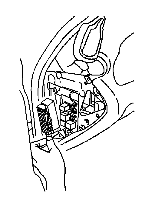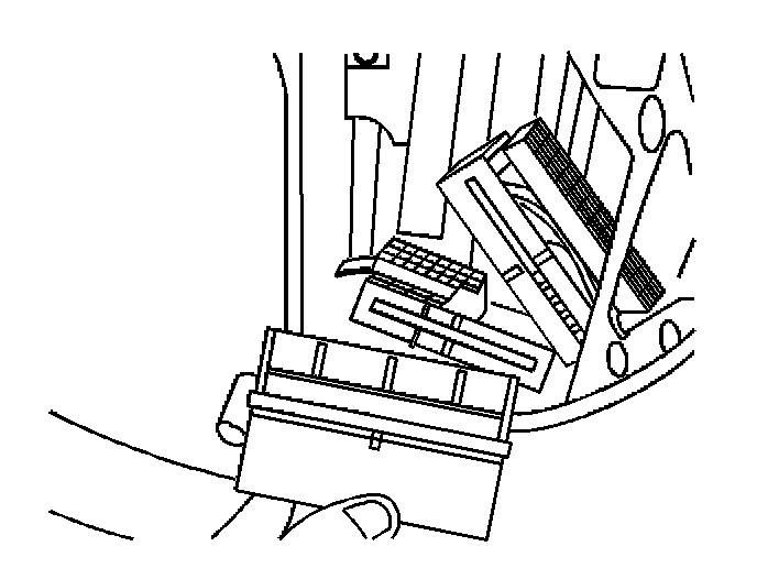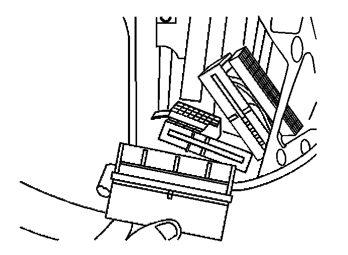 3. Loosen the electrical connector bolt at the outboard I/P junction block. Disengage the electrical connector tabs in order to disconnect the electrical connector from the junction block. The left side is shown in the graphic, the right side is similar.