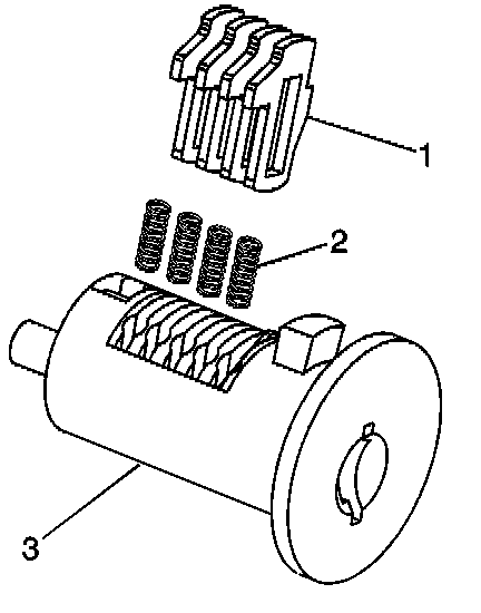 6. Inspect for the correct loading of the tumblers (1) by inserting the key into cylinder (3). All of the tumblers should be flush with the lock cylinder.