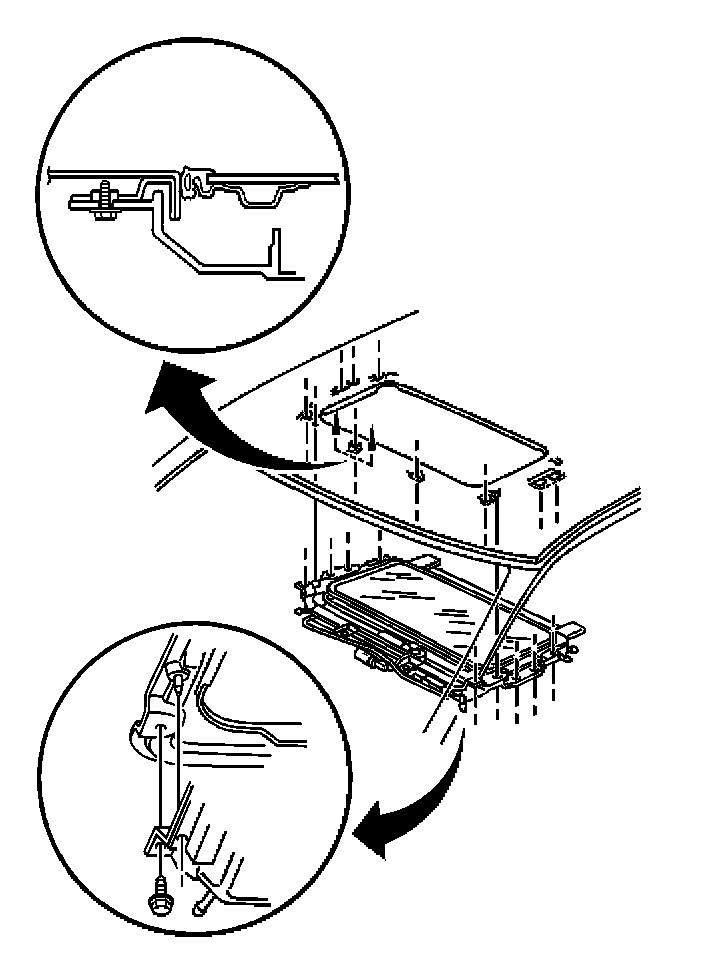 1. Position the sunroof module to the vehicle roof with an assistant.
