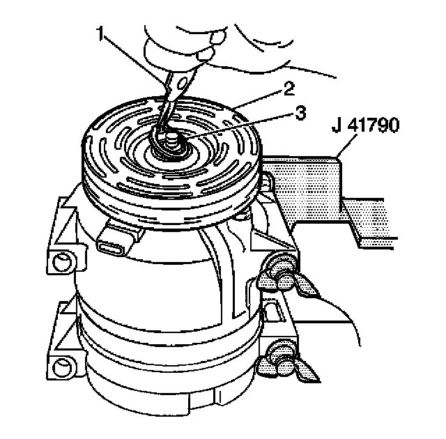 3. Remove the clutch rotor and bearing assembly retaining ring (3), using external snap ring pliers (1).