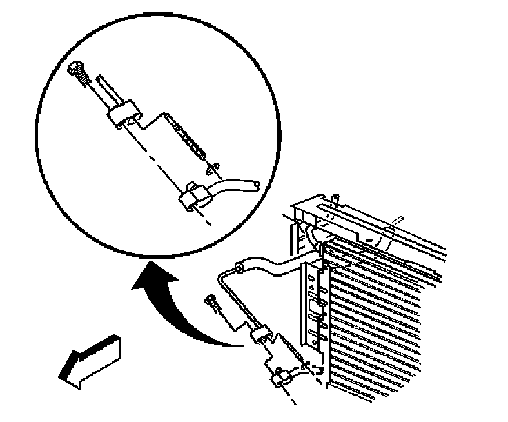 3. Remove the bolt holding the evaporator hose assembly to the condenser.