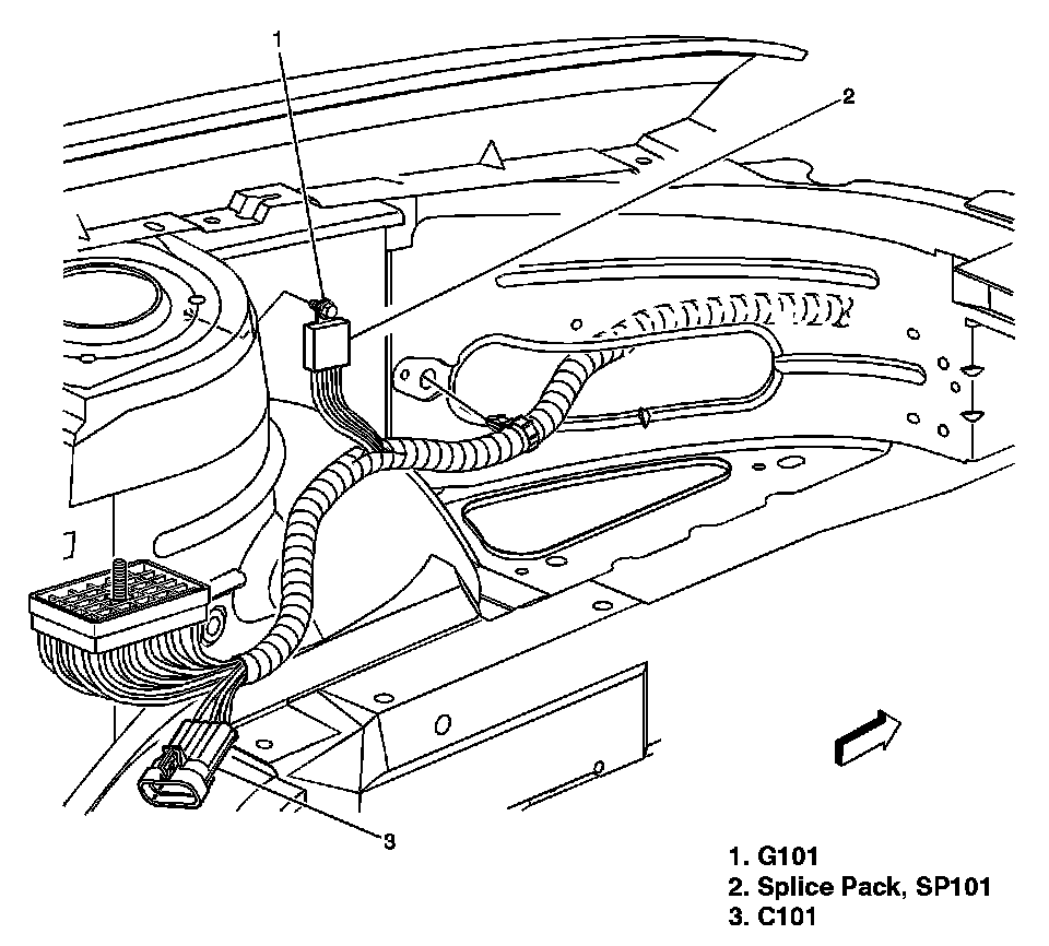 Splice Pack, SP101 is located on the left side of the engine compartment, near the strut.