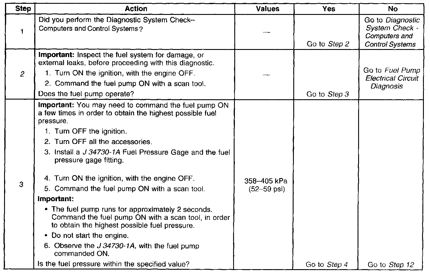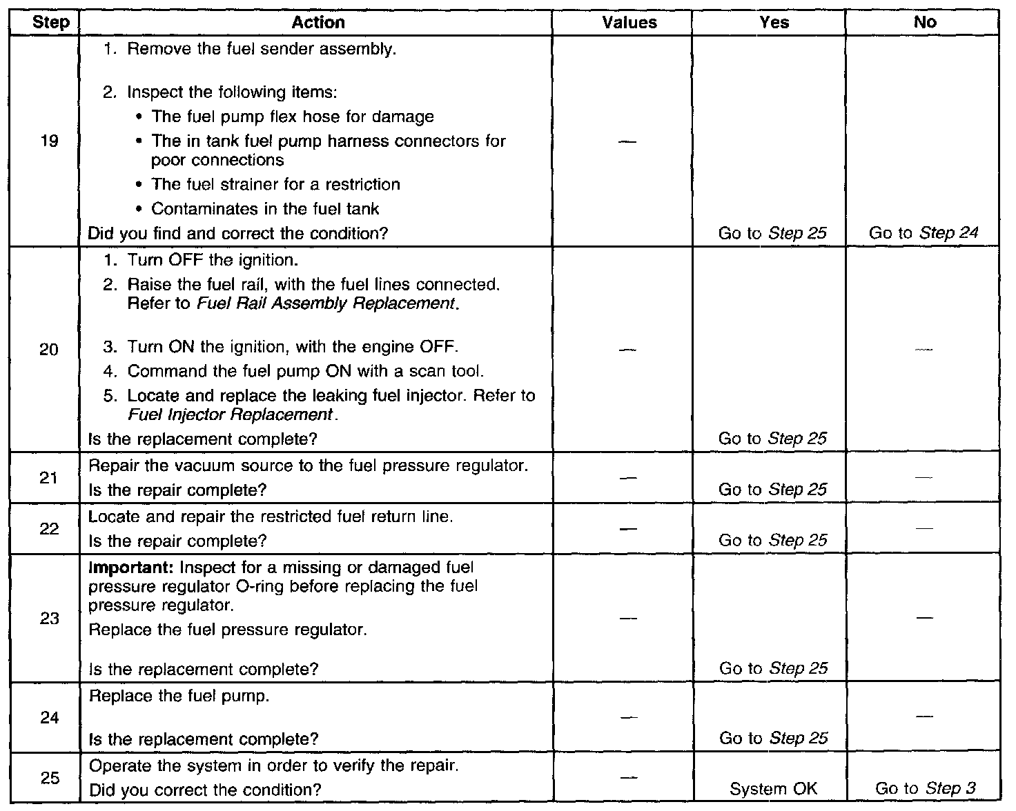 18. This step verifies that a circuit condition is not the cause of a fuel pressure concern. Inspect all fuel pump electrical circuits thoroughly.