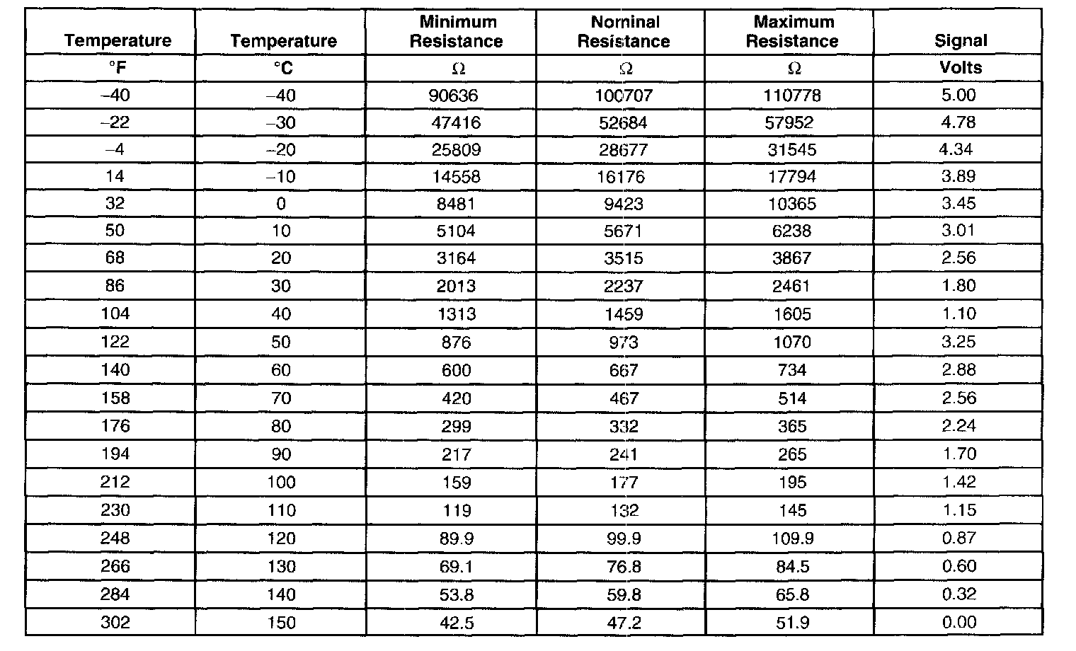 Transmission Fluid Temperature (TFT) Sensor Specifications: