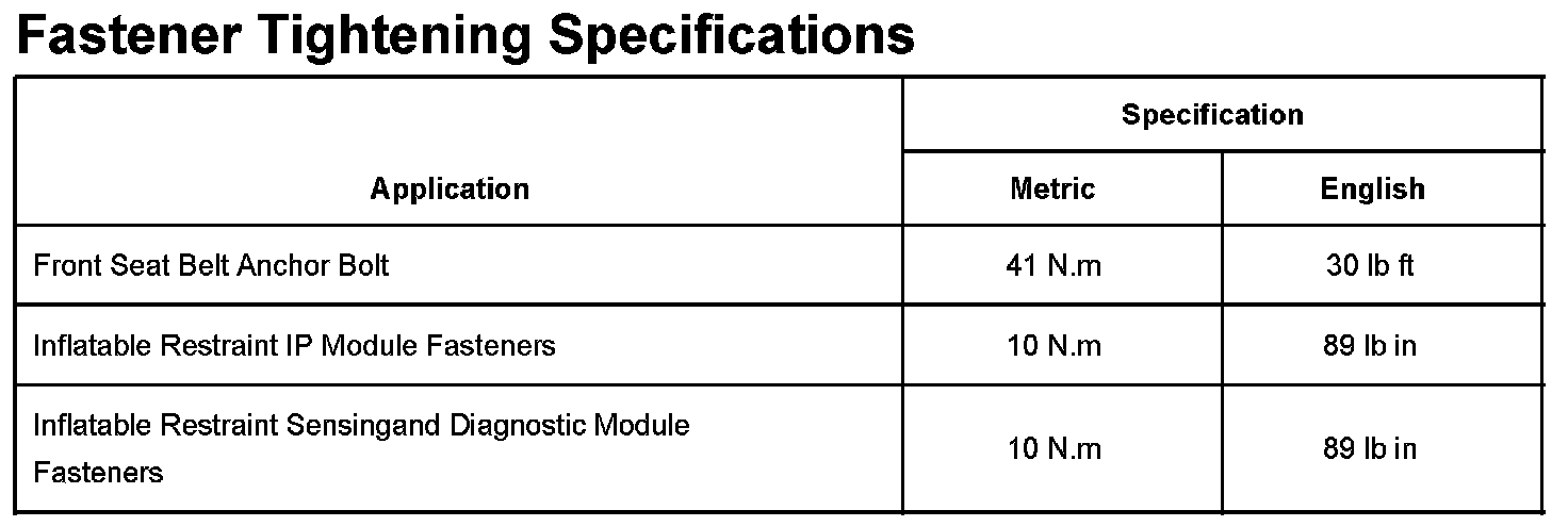 Fastener Tightening Specifications: