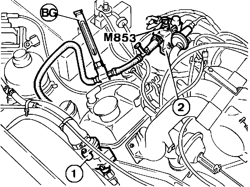 1. Connect the bypass harness 8.0141 P, the OCR or dwell meter, and the thermometer 8.0141 BG, Fig. 8, which is to be mounted in series on the hose going from the water pump (1) to the water jacket (2).