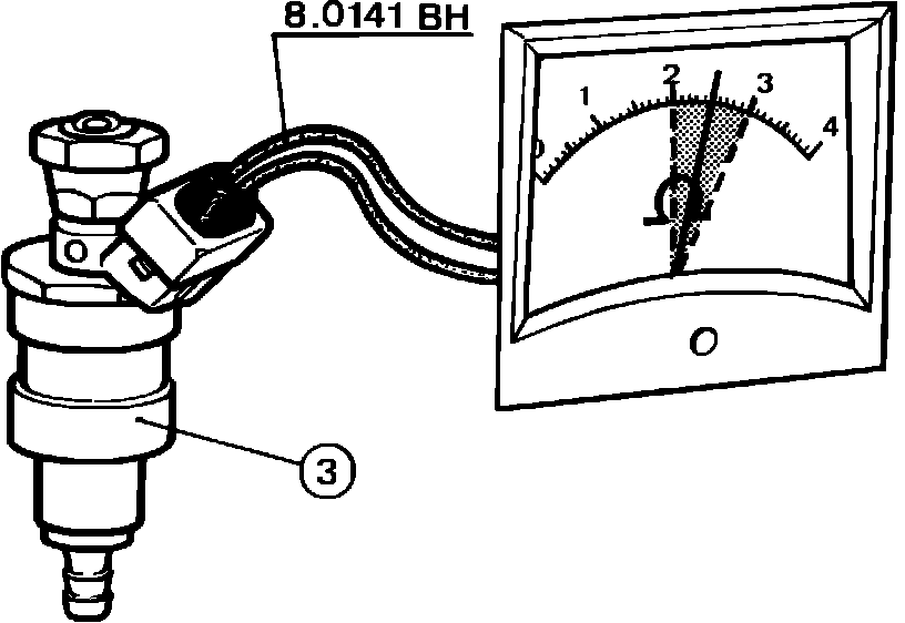 6. If voltage at pin (a) wire 152 = 12 volts, check the windings of the frequency valve (3) using the test harness 8.0141 BH, Fig. 6. Resistance of the windings should be 2 to 3 ohms.