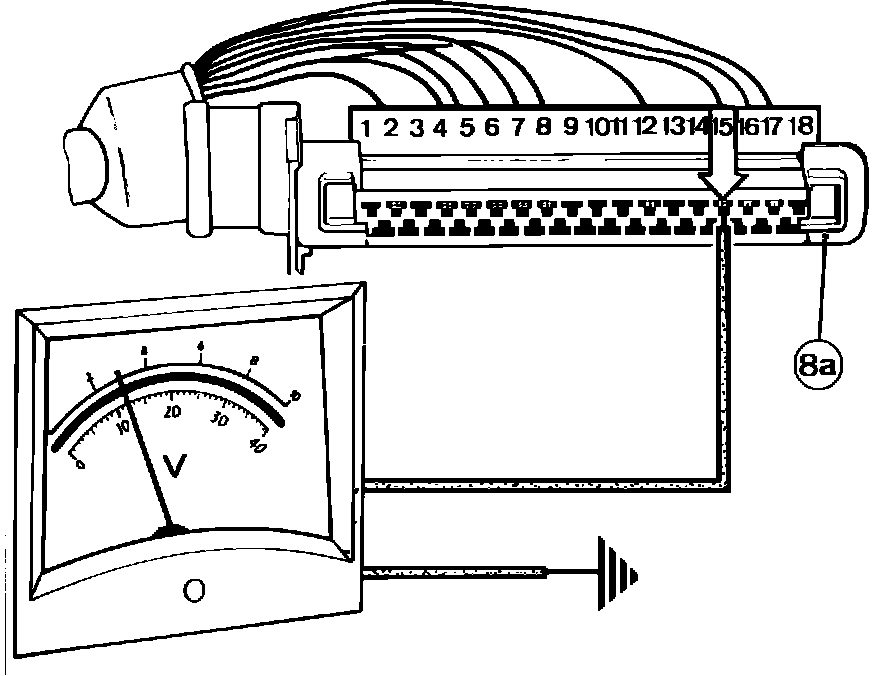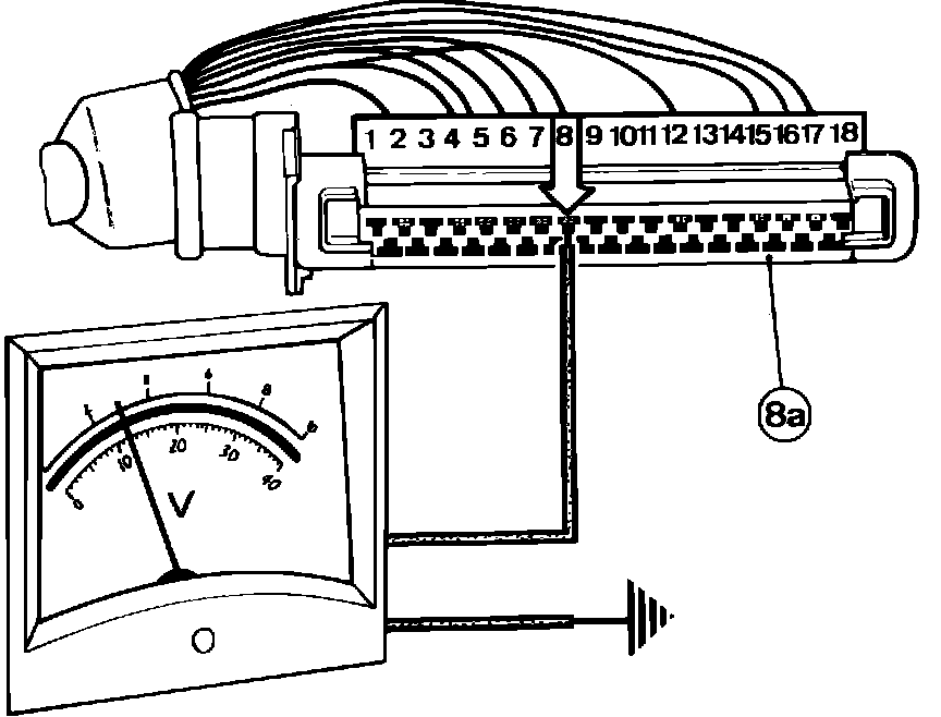 3. Check voltage between pin #8 of connector (8a), Fig. 3, and ground. Voltage reading should be 12 volts.