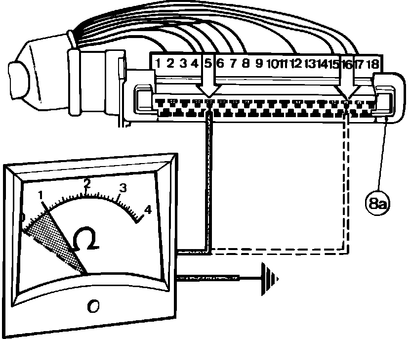 8. Check the connections between the electronic control box and vehicle ground. Test between pin #5 of the connector (8a) wire MS and vehicle ground, Fig. 7, resistance should be less than 1 ohm. Test between pin # 16 of the connector (8a) wire M16 and the vehicle ground, Fig. 7, resistance should be less than 1 ohm.