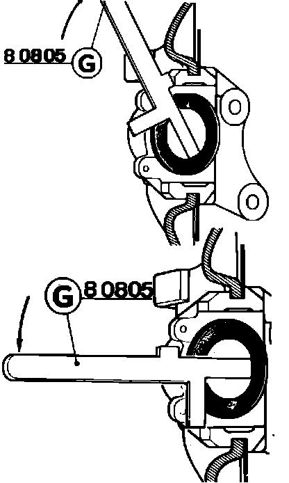 5. Push cylinder towards disc, then lift caliper and remove inner pad.