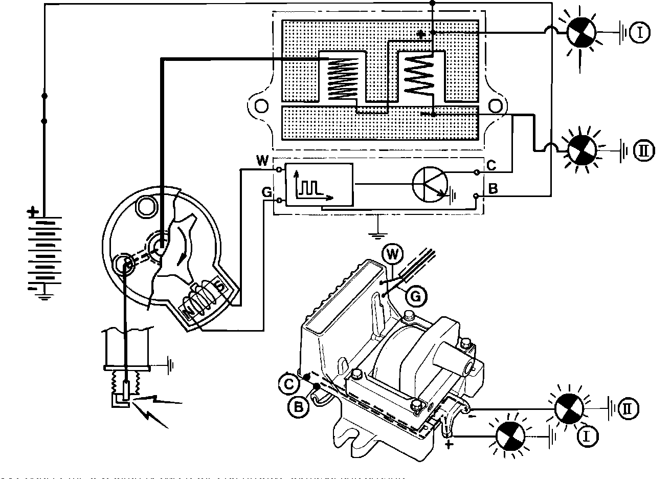 2. Connect the test lamp between the coil negative terminal and ground. If the test lamp does not light up, There are two possible failures: