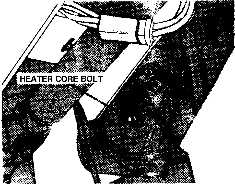 6. Remove heater core securing bolt, Fig. 4 and heater core.
