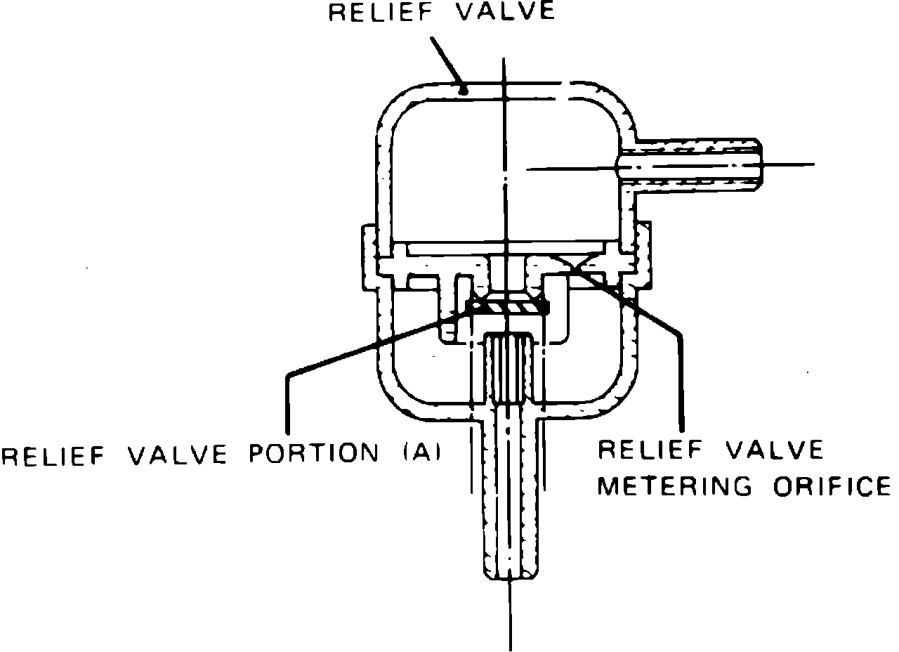 When the engine is not operating, fuel vapors from the fuel tank are transmitted through a metered orifice in the relief valve, and flow to the charcoal canister where the fuel vapors are absorbed by the activated charcoal. In the event the relief valve metering orifice becomes obstructed, causing a vacuum within the fuel tank, fuel tank venting is accomplished through portion A of the relief valve, Fig. 2.
