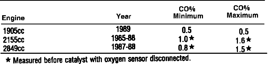 Idle Mixture Specifications: