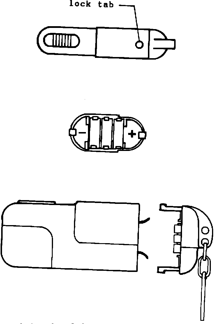 Taking care not to damage the retaining tabs, remove the batteries from the cover. The inside of the cover is marked + and -.