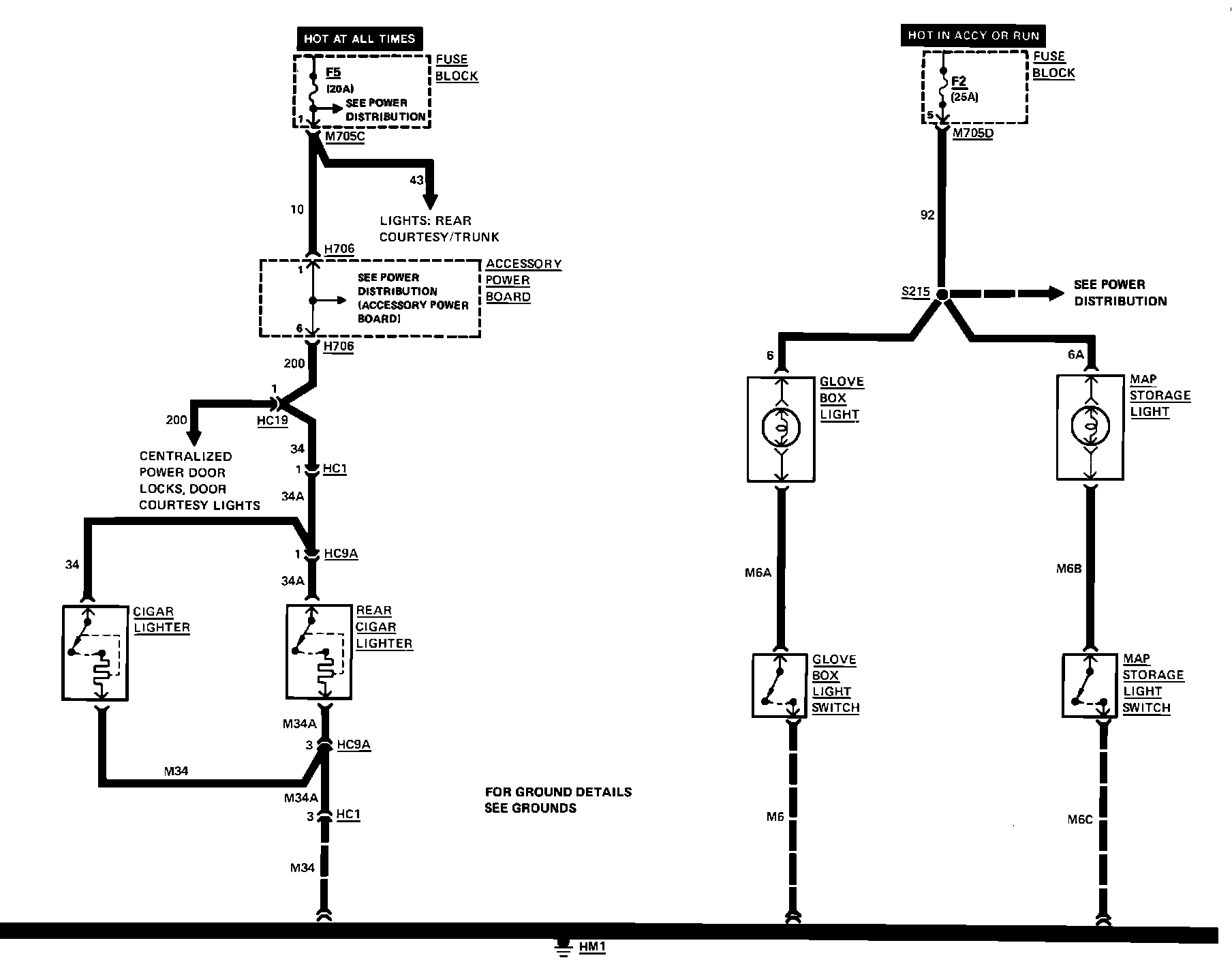 Fig. 45 Cigarette Lighter, Glove Box Lamp, Map Storage Lamp Wiring Circuit: