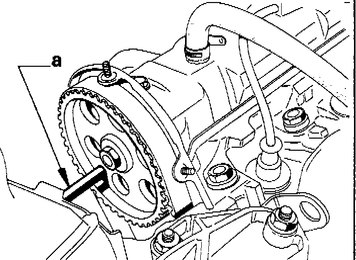 1. Lock camshaft at (a) using pin 0.0163