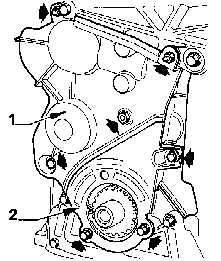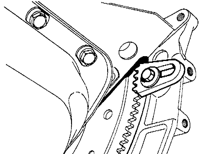 8. Turn tensioner square to release spring (cam (2) pointing down)