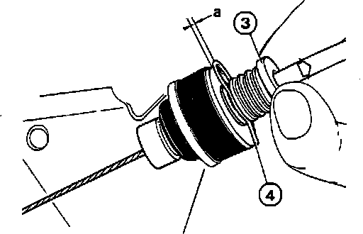 2. Pull cable housing stop (3) and install clip (4) to obtain a slight clearance (A), Fig. 4